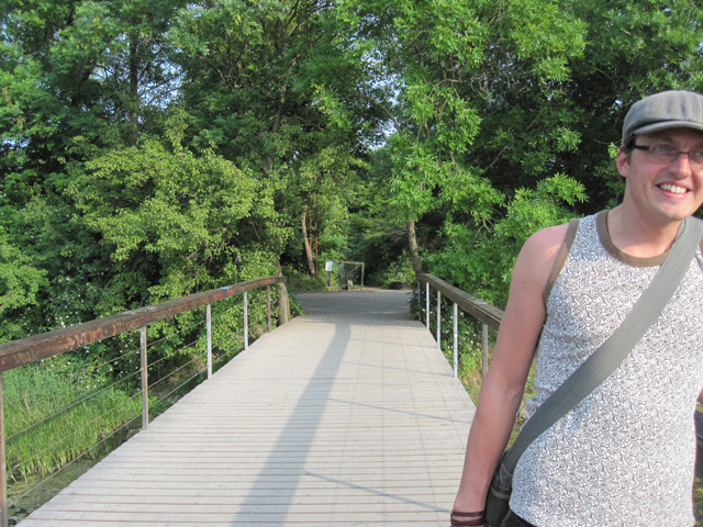 Það sést í þetta hús frá brúnni. MIG LANGAR í það. Fyrir utan að ég held að það sé ógrynni af skordýrum þar.. en það er í lagi því ég er komin í æfingu að halda frá bæði húsflugum, myggum og dúfum. Afdúfun svalanna gengur alls ekki vel, ég kynni að meta að heyra alvöru fugla söng á morgnana ekki svona afturkreist búkhljóð eins og þær gefa frá sér hér undir svölunum. Húsflugurnar mættu bara alltí einu á svæðið og fylltu íbúðina. Þær voru hér alveg í tugatali. Fyrst reyndi ég að hafa engan mat á borðum né í vaski, þá keypti í flugnaeiturs límbönd og límdi víðsvegar um heimilið. Límböndin hafa bara dregið nokkrar til sín en svo fann ég flugnaspaðann.. þarf ekki að fara útí þá sálma neitt frekar nema til að segja ykkur að þeim hefur fækkað um helling og eiga ekki von á að sjá morgundaginn.. múúúúhahahahaha.