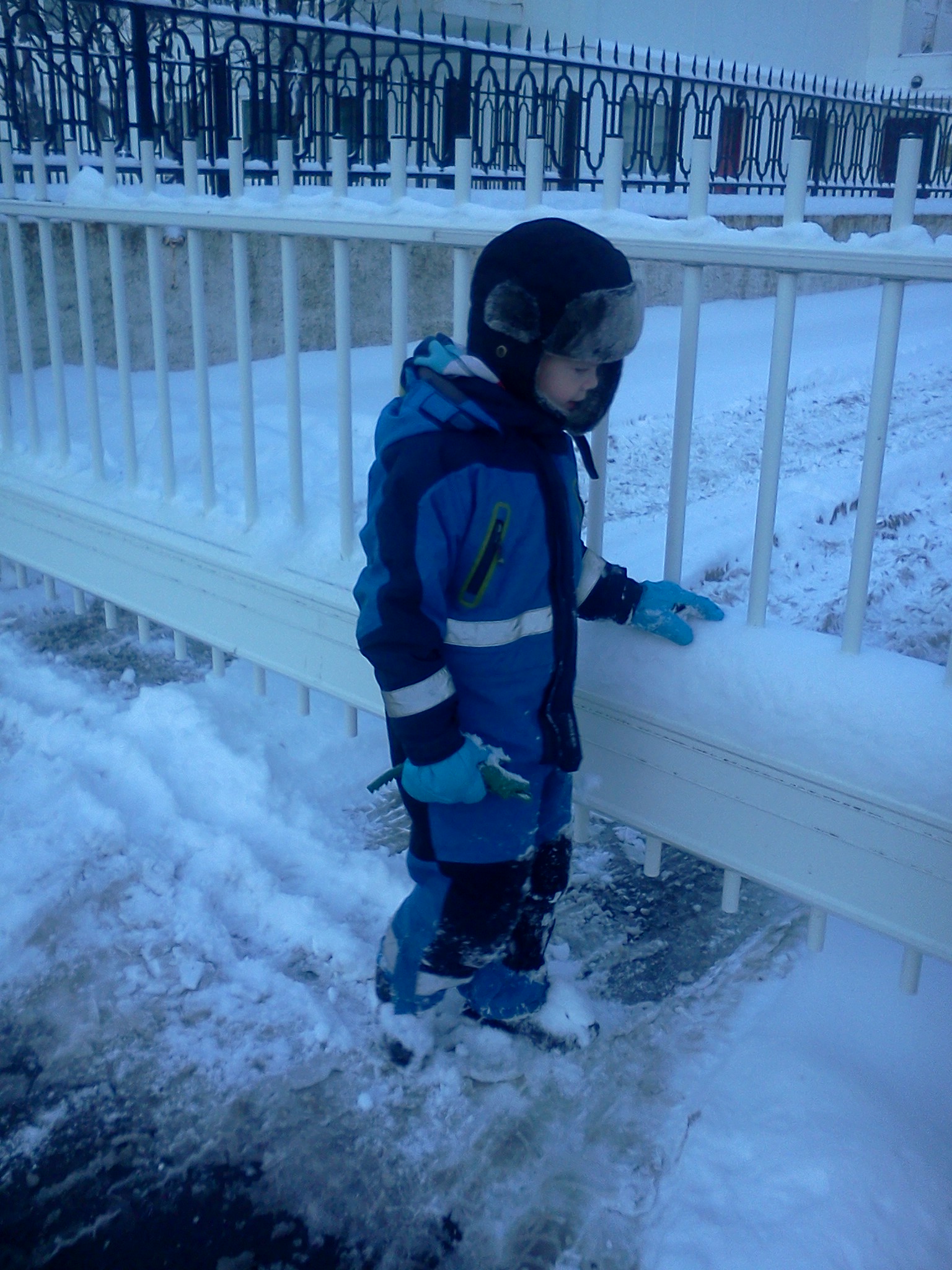Ég og Örverpið fórum um helgina síðustu að hitta Herkött nokkurn. Það er engin lygi þegar ég segi að öll handrið og bekkir á leiðinni voru með öllu snjólaus eftir að við höfðum gengið þar hjá. Ég get nú ekki sagt að ég muni eftir því að hafa gengið um í snjó þegar ég var 5 ára, en mínum börnum finnst eitthvað óþægilegt að hafa snjó ofaná handriðum og þess háttar og stunda þessvegna þá iðju að ryðja handrið Reykjavíkurborgar.