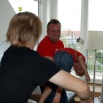 Opnu stuðlunum 5 er lokað öllum í einu með því að slá bandi um nálina og draga það í gegn um allar 6 lykkjurnar á nálinni.