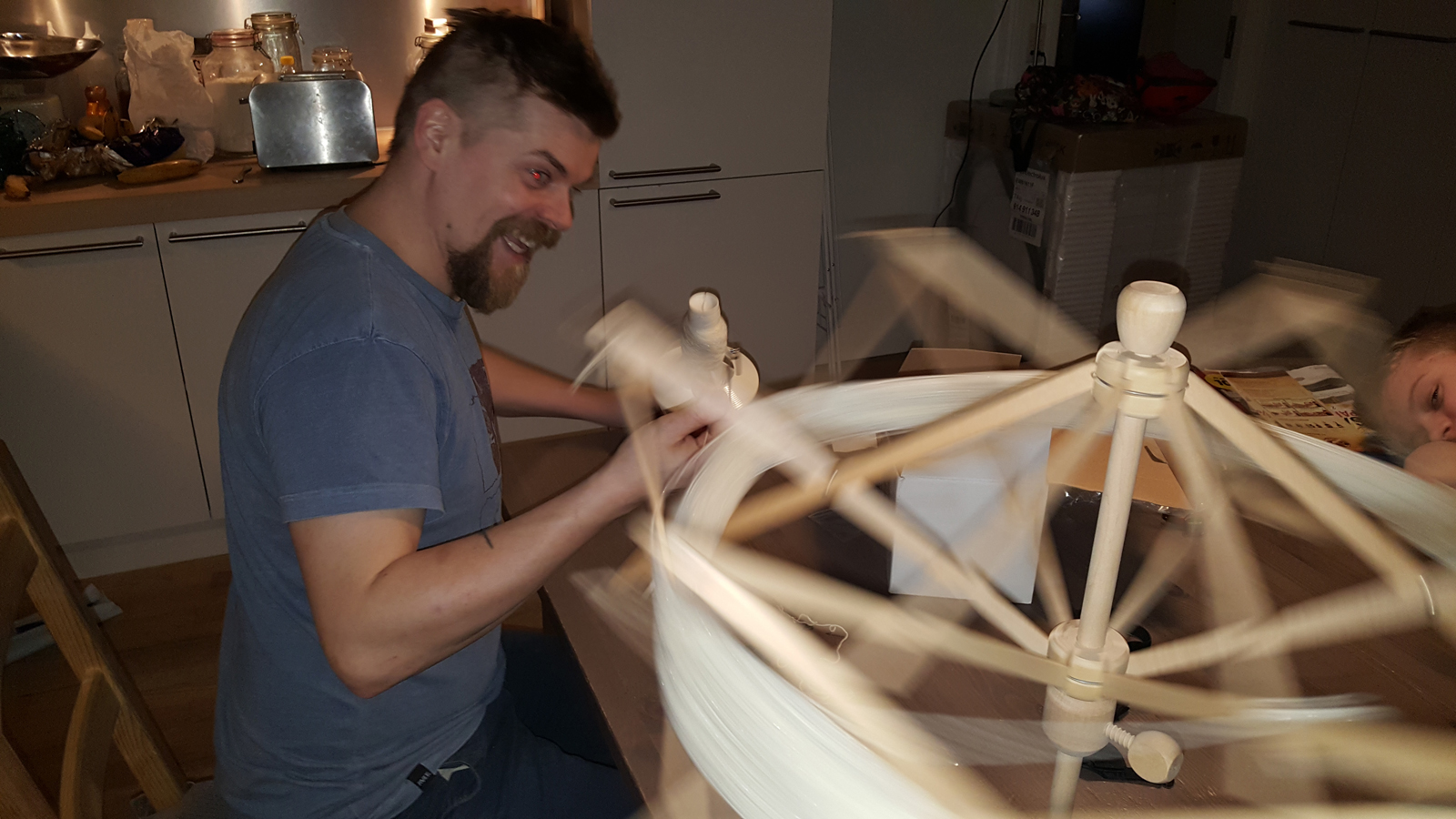 Keypti síðan garnvindu og hnotuvindu. Ég hélt reyndar að hnotuvindan væri garnvindan og að tréapparatið væri hesputré, en sá í einhverri bók að það er ekki þannig.