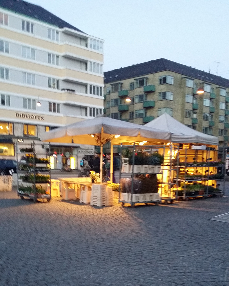Um daginn á leiðinni úr vinnu þurfti ég í búð og ákvað að fara í eina á Christianshavn. Tók ég þá ekki eftir því að það var verið að taka niður svona útigrænmetissölubás. Það er pottþéttur vorboði! Fyrir utan að það er komið nýjabrum á sum tré… það er samt frekar kalt ennþá.