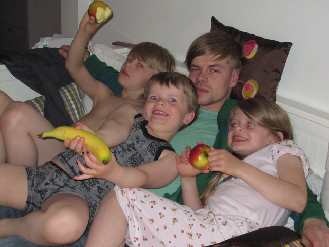 þetta er tekið alveg einni mínútu síðar.. fyndið að krakkinn er alltaf að sofna með epli í höndunum.