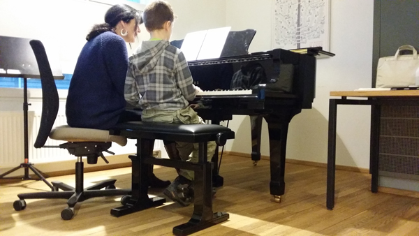 Diddmundur fékk óvænt pláss af biðlista á píanó hér eftir áramót. Honum finnst það æði. Svo var það stuttu fyrir fyrsta tímann hans að ég ákvað að fara inná dba (svona síða með notað til sölu), laust svona niður í hausinn á mér að kíkja þar akkúrat á stundinni og viti menn, þar beið mín rafmagnspíanó á slikk og ekkert (næstum), fyrri eigandi nýbúinn að setja það inn þegar ég hringdi. Hann hefði alveg eins getað hringt bara beint í mig.