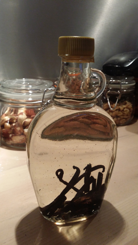 Ég er að brugga vanilluextrakt. Þrettándanum, sem er með rosalegan áhuga á víni og skemmtanalífi, spurði mig hvort mér þætti vodki góður. Ég svaraði honum því að mér þætti það nú reyndar ekki, amk ekki eintómur… ég hef reyndar ekki drukkið vodka í nokkur ár. Hann varð eiginlega svolítið fyrir vonbrigðum þegar ég sagði honum í hvað hinn helmingurinn af vodkanum sem eftir er fór í að gera vanilludropa. Hann spurði mig líka um hvort ég hefði eiginlega einhverntíma farið í bæinn og að dansa og skemmta mér. Mikið hlýtur maður að líta leiðinlega út í hans augum hehe.