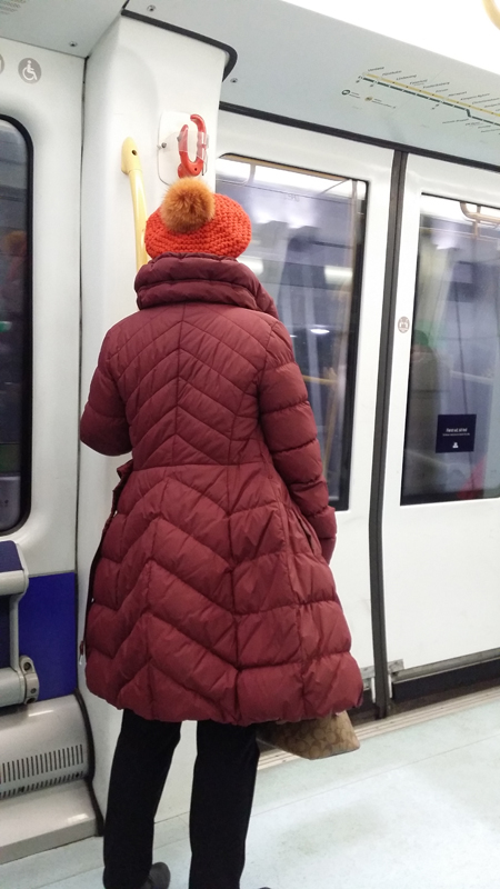 Vegnaþess að eitt dekkið á vagninum hennar eyðilagðist með öllu og það tók alveg viku að fá ný, fórum við töluvert með metró fyrstu vikuna í Vöggustofuna.