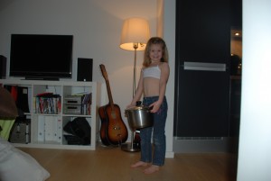 Og auðvitað er eldabuskan að elda í hyttunni. Hún fór í afmæli í dag, mjög sæl með það. Kom heim með nammi í poka, fána (reyndar án prikanna) og blöðru. Bræðurnir átu nammið og sprengdu blöðruna. Bíði þeir bara segi ég…stelpan er ótrúlega sterk. Ekki var verra að afmælið var haldið í svona leikjalandi þar sem foreldrar og forráðamenn geta gleymt börnum sínum meðan það verslar í Fields og það var boltaland og maður gat alveg grafið sig oní þá..sagði hún.