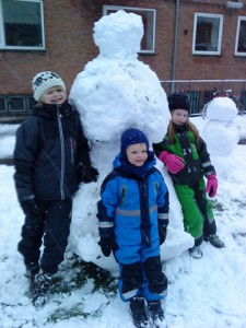 Og þau fóru líka út í snjóinn og veltu upp einum snjómanni.
