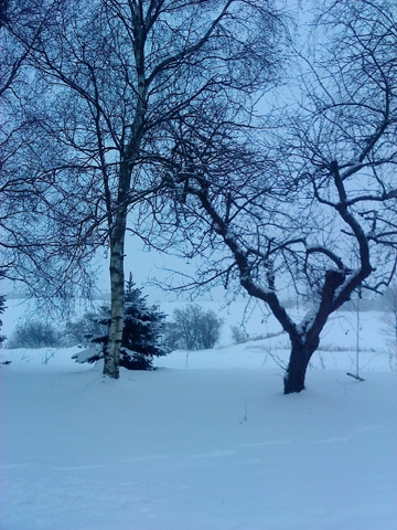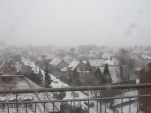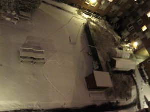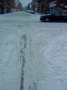 Hófst þá snjókoma aftur. Allur snjórinn hafði farið og vinna mín og ferðir þangað voru mun léttari. S.s ekki allt vaðandi í saltkornum á stærð við fótbolta og svona bleytubletti sem er vonlaust að skúra upp með léttum leik. Jólaleg mynd samt.