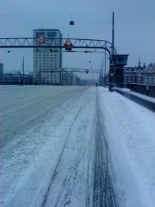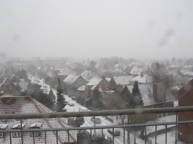 Á meðan var ég þarna, í öllum þessum snjó. Þurftum að ýta bílnum sem við komum í upp brekkuna sem lá að bænum. Maðurlifandi hvað ég var fegin að vera að eðlisfari búri og búin að vera í snjóbuxum og úlpu, í bomsum, með vettlinga og húfu síðan fyrsta snjókornið rak hingað (ábyggilega óvart frá Noregi eða eitthvað), á meðan töffheit Kaupmannahafnar eru í töff skóm, í töff kápu og töff yfir höfuð, s.s í töff húfu.