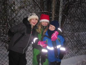 Erfingjarnir fengu galla frá ömmu L sem eru æðislegir. Og samkvæmt tilmælum frá leikskólanum eru þau öll komin í lúffur. Hér finnst þeim óþægilegt að börn séu í ullarvettlingum. Ég skil ekkert í því enda alin upp á ullinni.