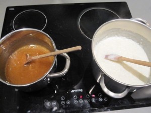 Númm, innandyra höfum við auðvitað verið að gera ýmislegt, verandi komin í jólafrí og svona. Eða erfingjarnir eru í jólafríi, við erum að vinna alveg villt og galið og erum nánast í engu jólafríi, en það er alveg sama. Þarna er ég með á eldavélinni grjónagraut og svo brætt að mig minnir síróp, sykur og smjör eða eitthvað álíka..