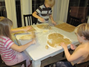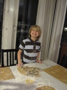 Og aftur sest við eldhúsborðið og skorið út piparkökur.. það er nú bara verkefni útaf fyrir sig að hafa ofan af fyrir börnunum meðan þau eru í svona fríi. Meðan ég er búin að vera að skrifa hingað niður tildæmis, hafa drengirnir komið fram með 3 mismunandi flaugar úr legókubbum hver og sýnt mér allar mögulegar virknir þeirra, en þær eru um það bil hundrað á hverja vél.. og Sprengjan er líka eitthvað eirðarlaus og hefur komið hingað fram og bara starað á skjáinn hjá mér og farið svo bara aftur.
