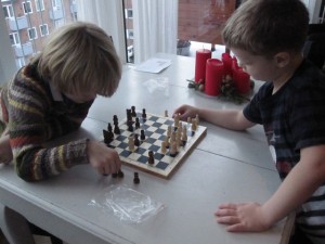 Þarna tefla þeir bræður eftir bestu getu. Hvorugur þeirra kann mannganginn almennilega en það skipti ekki máli, ekki svo lengi sem Frumburðurinn vinnur spilið. Hann á bágt með að tapa, enda stefnir hann stöðugt hærra og lengra en nef hans nær.
