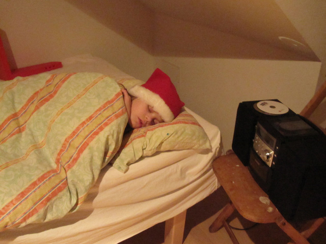 Júlemanden (jólasveinninn) hefur komið hér eins og lög gera ráð fyrir og í einni ferðinni skutlaði hann tafli í skó Frumburðar, sem reyndar er hættur að trúa á jólasveininn. Ég var að slökkva á jólaseríum, sem við gerum um miðnætti séum við ennþá vakandi, sem ég er alltaf, til að spara rafmagnið, og óð inní herbergi Sprengjunnar, þar sem þau sofa bæði, og hann alveg.. „hvað ertu að fara að gera????“ hélt að ég væri að fara að setja í skóinn, haha.