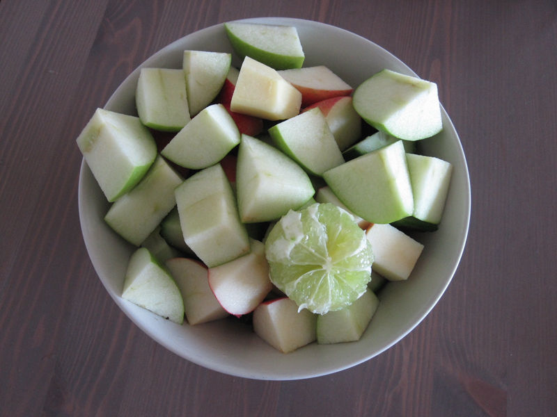 Klassískur með eplum, lime, engifer, gúrku og sellerí. Gerði annan síðar (ekki sama daginn samt), með því sama nema líka með þremur blöðum grænkáli, B E I N T úr svalapottagarðinum.