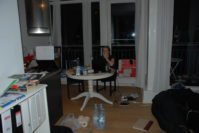 Ekkert er annarlegt við ástand míns heimilis heldur síðasta mánuðinn þar sem kunnugir sem ókunnugir (ég hef verið óvenju dugleg að draga menn af djamminu með mér heim þennan mánuðinn….hehe) þurftu að horfa uppá fáránlega mikið af drasli. Ég veiddi til dæmis fimm súr mjólkurglös á einhverjum tímapunkti uppúr draslinu við lærdómsstöðina… efast um að mikill lærdómur hefði getað átt sér stað þar, svo ég færði mig við eldhúsborðið fyrir um tveimur vikum.
