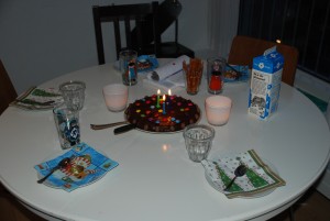 Og auðvitað var kaka hér á Englandsvej. Hún var æði góð. Ég tók video af honum þegar við sungum og hann blés, eða pústaði eins og hann segir og set það kannski hér inn við tækifæri.
