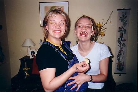 Bryndís systir mín átti afmæli í gær. Hún varð 25.ára. Í tilefni af því pósta ég hér með mynd af okkur systrum, eða ætti ég að segja Bryndísi og dýrinu, ég er ekki alveg ég sjálf … ekki bara var líkami minn hertekinn af því sem á þeim tíma var bara eitthvað furðudýr heldur lít ég líka út fyrir að vera veglega andsetin og það ekki á heppilegan máta. Myndin kemur okkur alltaf til að hlægja. Ég var örugglega búin að birta myndina áður en það skiptir ekki megin máli hér í þessu landi.