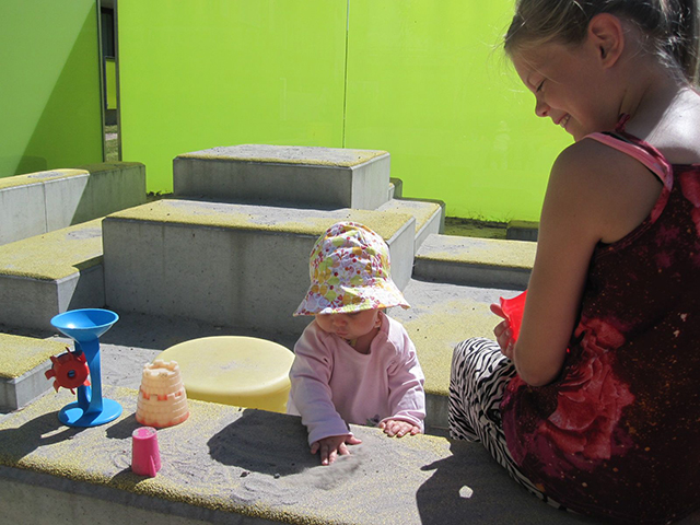 Nú, þarna eru stystur úti. Aðeins að dóta í sandinum. Hún var alveg fersk á því að þjóta á skriðinu útum allan garðinn hér niðri og sú eldri á eftir.. hún var samt fljót að gefast upp á þessu óðagoti í þeirri litlu.