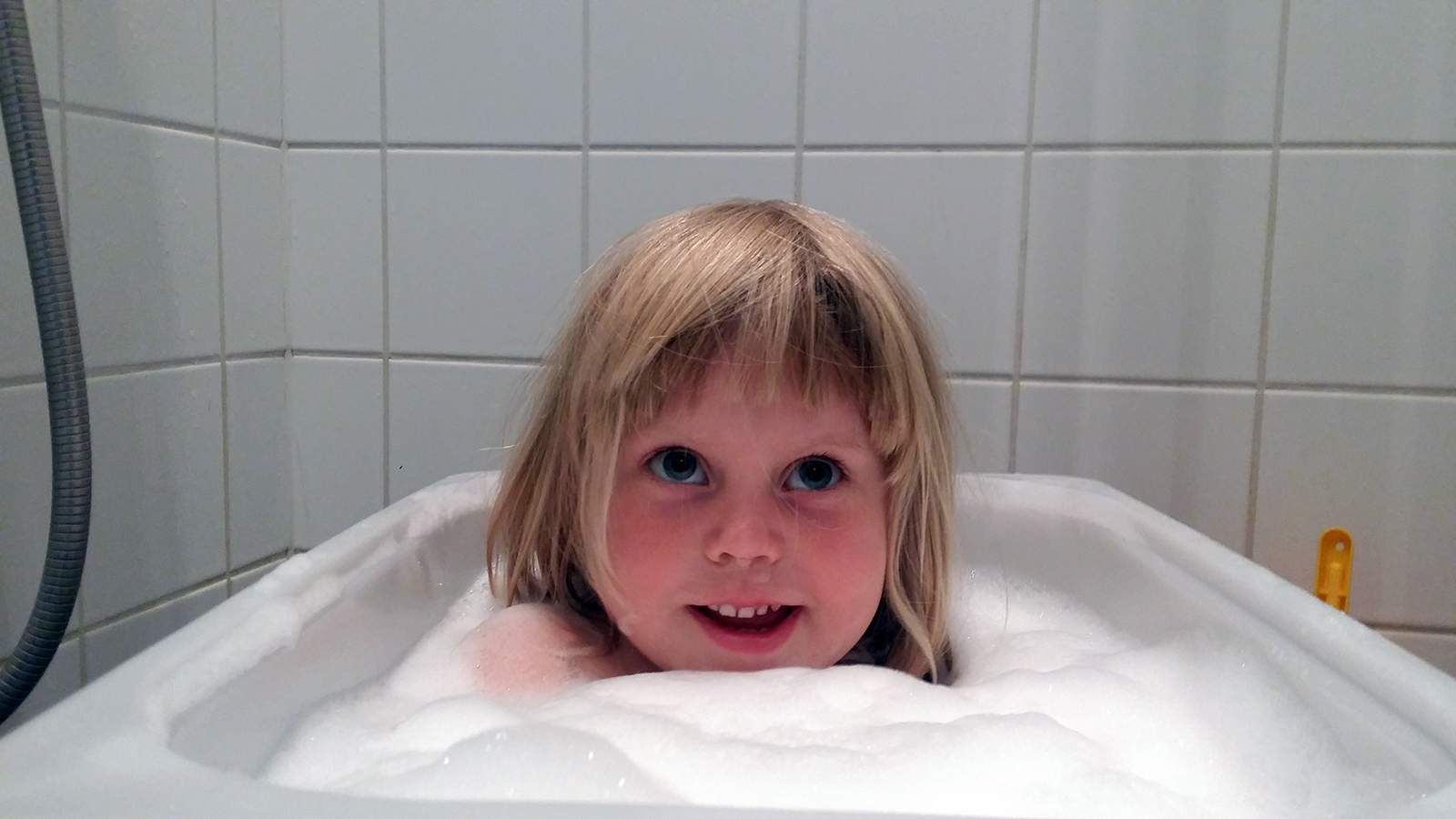 Mögulega endaði þetta þannig að hún svketti duglega yfir móður sína og yfir allt baðherbergið og fékk svo nokkrar skammir í hattinn fyrir. Hehe.