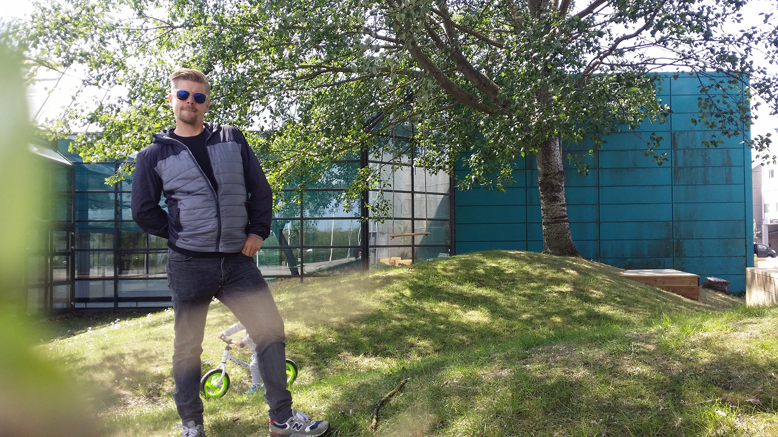 Þarna er Eiginmaðurinn góði í Bellaby have. Við skondruðumst yfir til að vökva garðinn sem við erum með þar og komumst að því að á þessum hól er verið að koma fyrir allskonar leiktækjum úr tré. Rólur í trjánum og svona hitt og þetta. Ég bókstaflega e l s k a hvað daninn er ótrúlega manneskjulegur. Allt fyrir manneskjurnar í bænum gert.