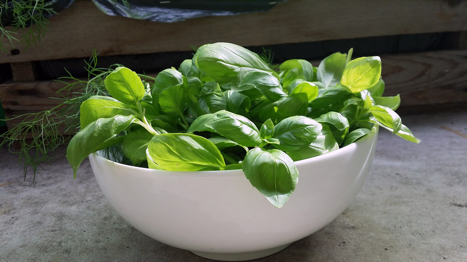 Og hér smá uppskera af svalagarðinum. Rifsberin er ég bara að frysta meðan ég safna í svosem eins og eina hlaupkrukku. Basilíkunni breyttum við í pestó og dillið fór á að mig minnir fiskinn.